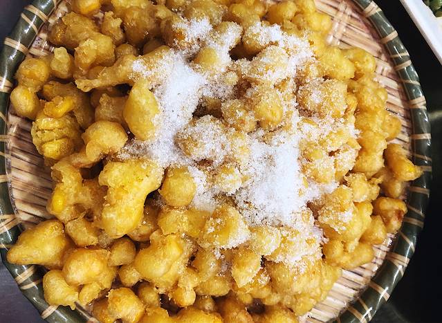 晓楠亲点的解辣神器。糖霜裹着炸的酥脆香甜的玉米粒,很有小时候的味道。
