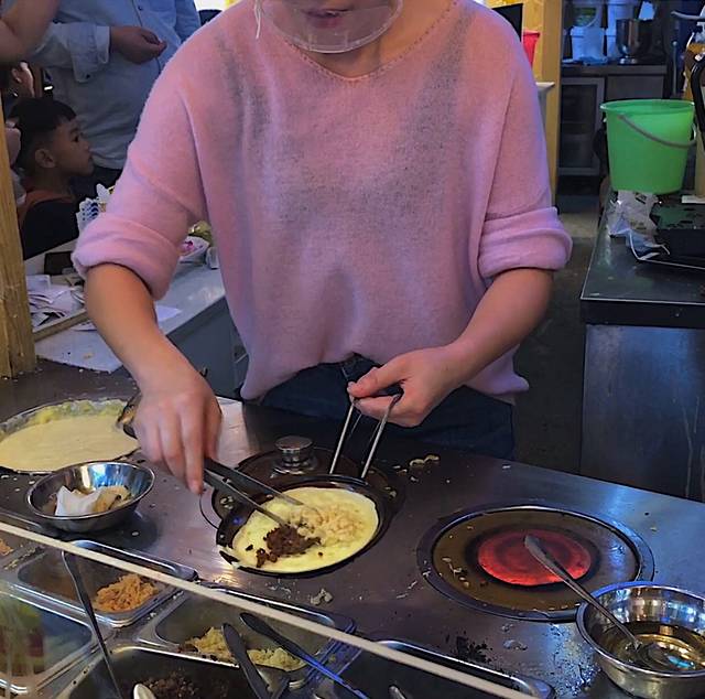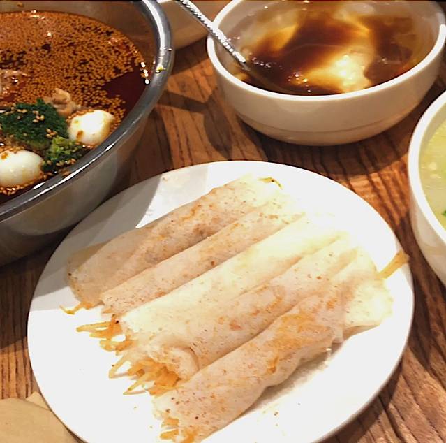 类似于春卷和蛋烘糕的混合体,也不知道我是哪里不对了,竟然觉得辣的吃不下。