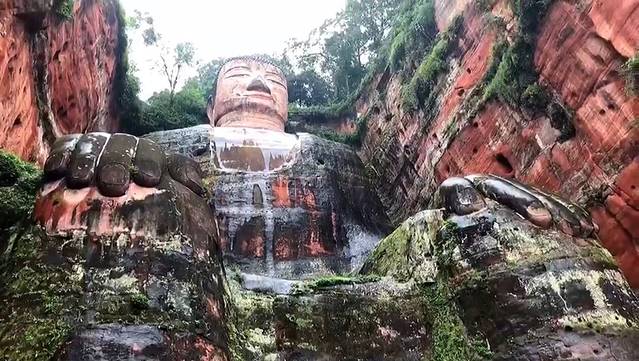 乐山大佛,坐立于大渡河、青衣江和岷江三江汇流处。因三江水流之湍急,水势凶猛,古时往来船只行进至此常常发生船翻人亡的惨剧。因此,海通禅师普渡众生,召集人力修建此乐山大佛。