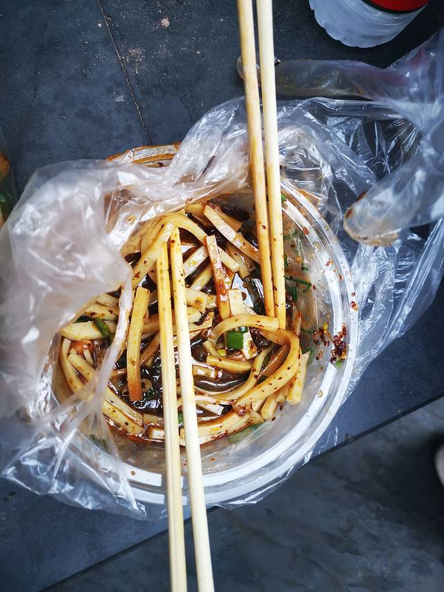 凉粉,说是给我加的少辣,但是还是太辣了,哈哈。