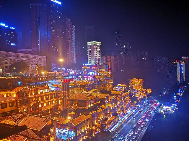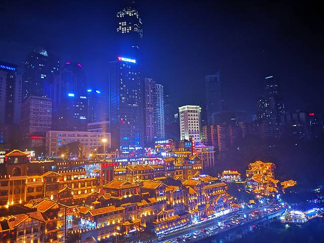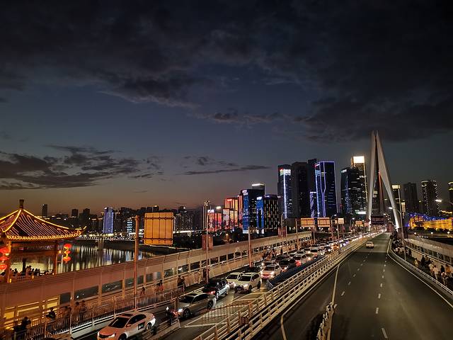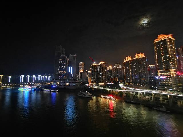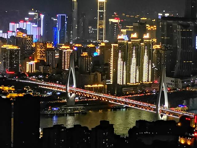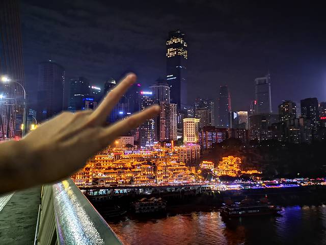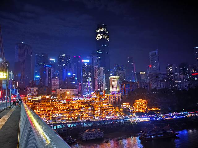洪崖洞,依山而建,现实版的千与千寻。千厮门大桥是看洪崖洞夜景最好的地方。灯火交相辉映,游轮缓缓驶过,吹着江风,看着山城夜景,很惬意。