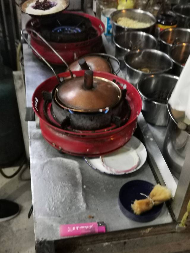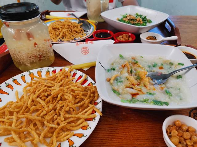 油茶,巴蜀地区常见的小吃。大王油茶这家店,美团上评分很高,知乎上也有攻略提到,所以既然来到了磁器口,就来品尝一下。油茶是米糊状,把馓子倒进去搅拌均匀,加上辣椒油,酥香麻辣,还可以要一碗醪糟桂花汤圆,口感不错。