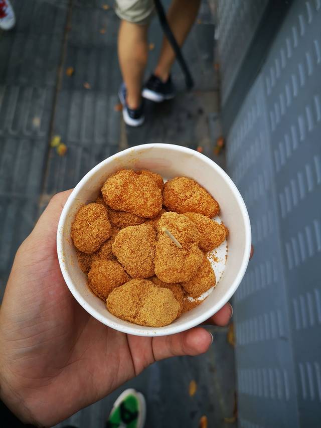 下午来到了磁器口古镇,吃了糍粑,但是竟然没给我浇红糖,不过也还挺好吃。