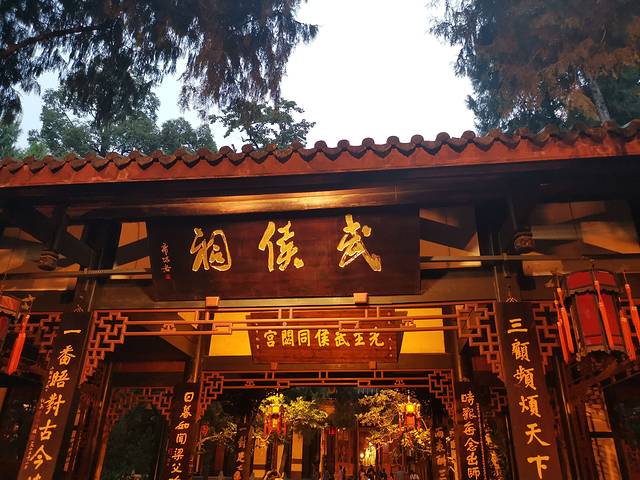 汉昭烈庙和武侯祠,君臣合祀祠庙,由刘备、诸葛亮蜀汉君臣合祀祠宇及惠陵组成,大门匾额为“汉昭烈庙”。