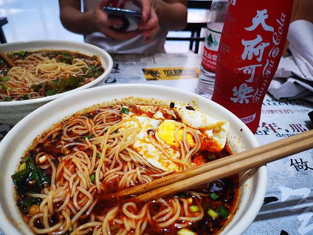早上起来吃小面,酒店旁边的重庆小面特别好吃,老板人很好,我一份没吃饱,又单点了二两面,老板给我上来的又是满满一碗,只收了2元钱,好怕老板亏本啊。