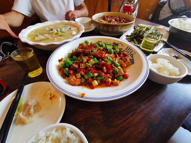 大众点评找了个成都馆子,叫饕林餐厅,春熙路附近,现场排队要好久,不过好在机智的在网上提前取号。素菜王,河渡鱼,辣子鸡都很好吃,这家的冰粉放料很足,在路边别家店吃的都没它家好吃,强烈推荐。