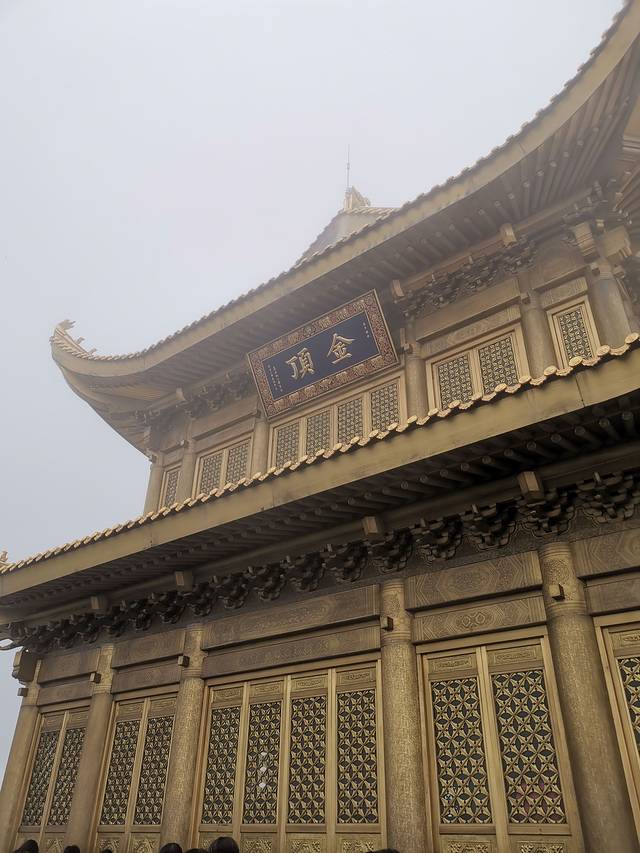 到了金顶,现在还有雾,不过金顶的天气千变万化,过会就是晴天。