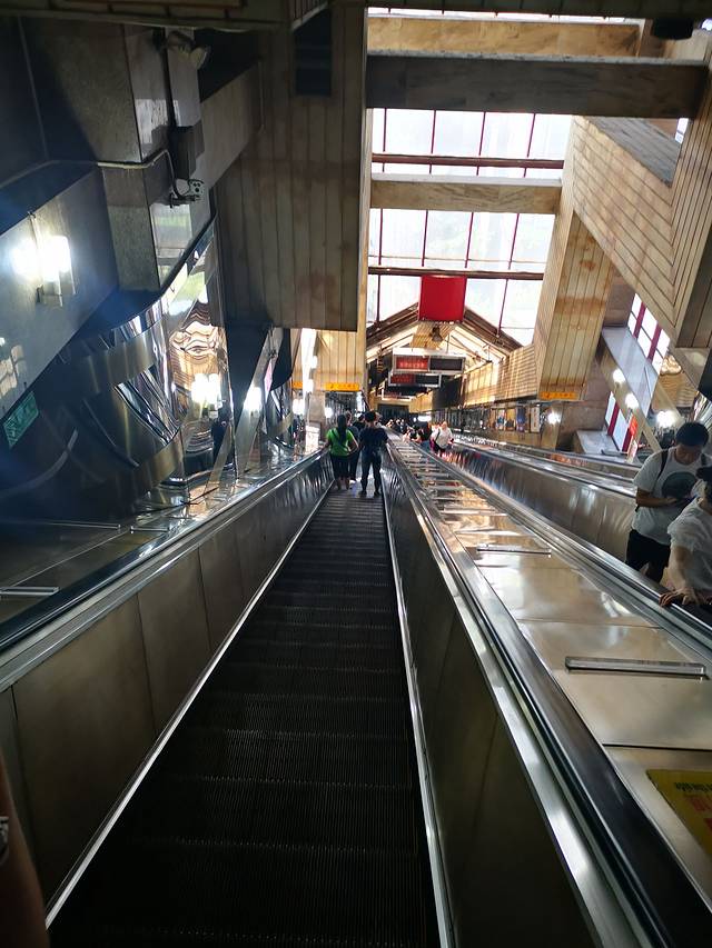 乘坐扶梯两元钱,望不到头,是老重庆人上下山的交通工具,号称是亚洲第二长的坡地大扶梯(第一长的在朝鲜平壤)。