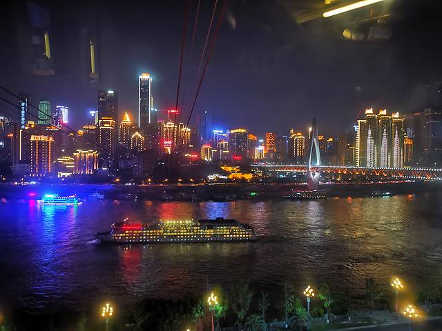 游轮恰好经过,可以在朝天门码头坐游船两江游,长江与嘉陵江。