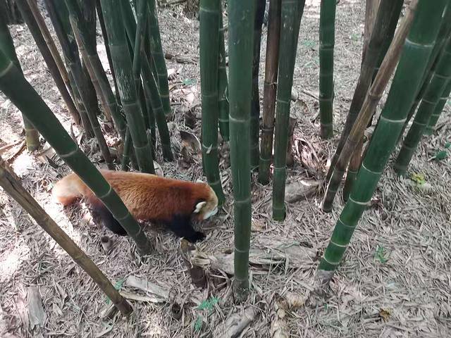 下午先坐地铁到熊猫大道,然后可以坐景区直通车来到了大熊猫基地。先看到了小熊猫,很淘气,也很凶,据说有的时候会伤人,所以没敢太逗它,捂脸