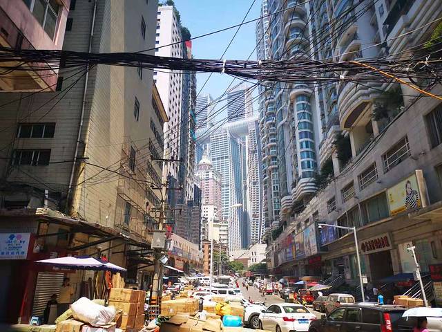 下午的飞机,晚上才到。从重庆江北机场赶往洪崖洞附近,出了小什字地铁口,拍下了山城的第一张照片。