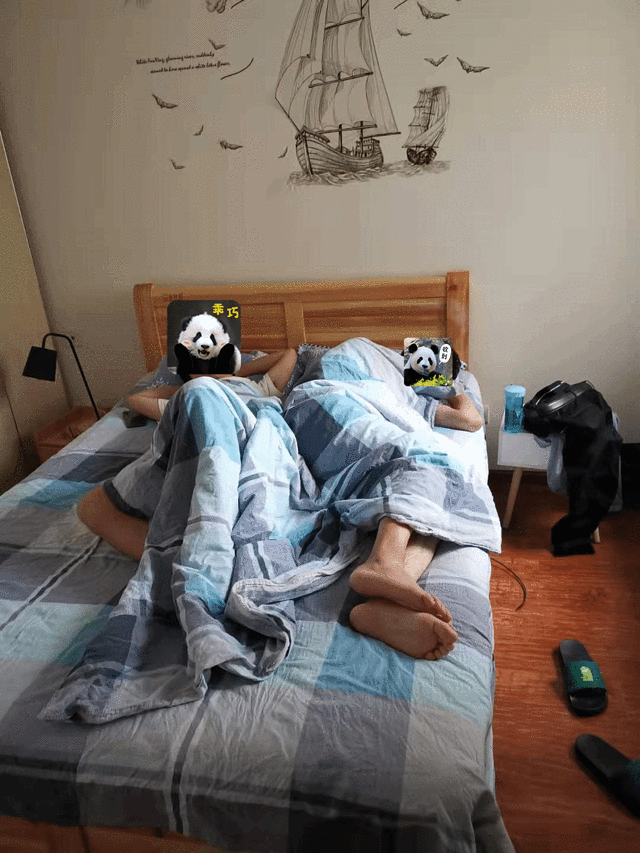睡得四仰八叉的,除了上午比较活跃之外,就一直睡,睡醒了卖萌,吃竹子,玩会继续睡。