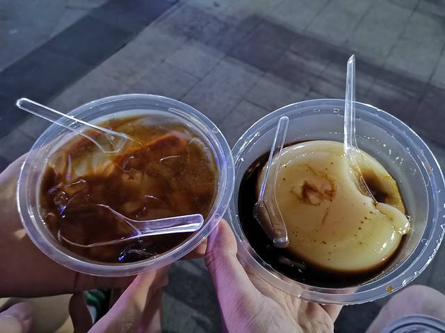 晚上大概11点回到了旅店附近,发现万达广场还一堆手推车卖凉糕和凉粉的,买来吃吃吃,凉糕找了个网图。下面依旧是红糖。