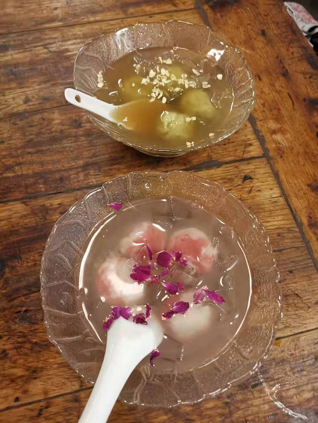 路过一家店,觉得冰汤圆很稀奇,就进去吃了,感觉还不错,抹茶味和玫瑰,偏爱抹茶一点。