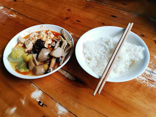 我们在报国寺吃的素斋,出乎意料的好吃,也有可能是走山路累到了。