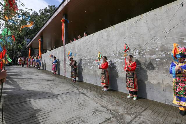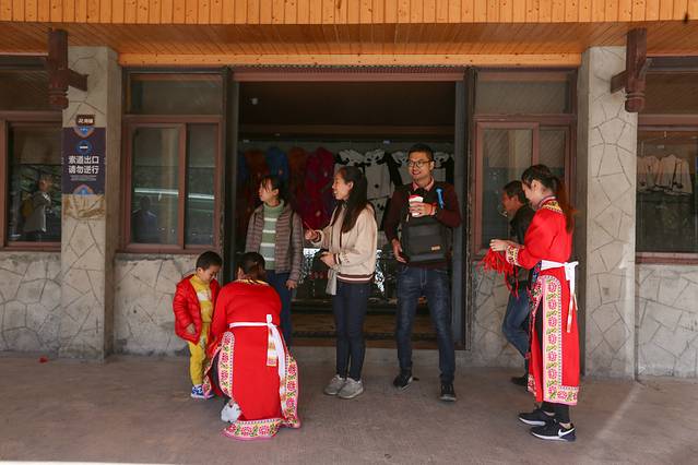 坐在索道上还能看见远方的雪山,真的很漂亮,我还特意拍了好几张照片,从羌情园索道处出来,路上还有工作人员举着小旗子站在路边,在询问工作人员后,才知道等下还会有什么仪式,还可以沿途跟着工作人员体验羌族的新年仪式,感觉好有仪式感