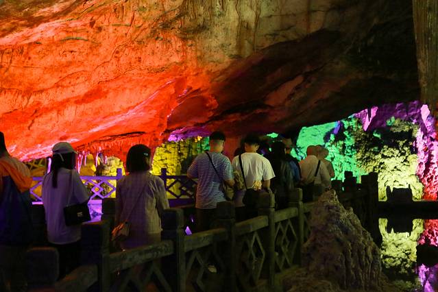 情人桥过去就是猿王洞了,这个强烈安利,还不错的,猿王洞算是一个天然溶洞了吧,里面还是比较大,前段的景色真的一般,后段景色真心还可以(大约30分钟),洞内还有自助语音介绍,里面的钟乳石也是形状各异,配上彩灯也算小小惊艳了一把