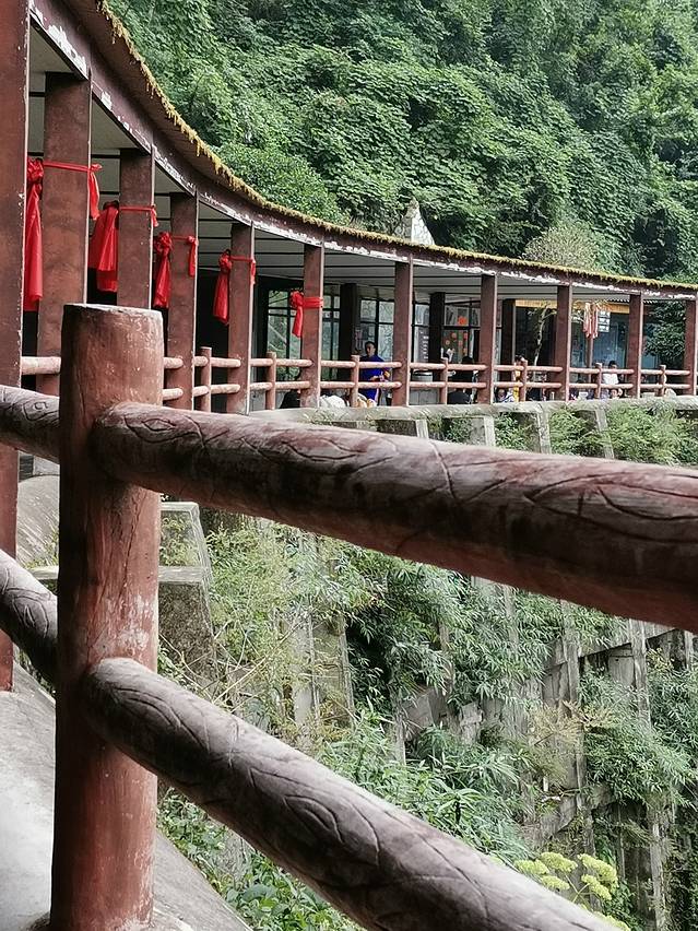 9点半正式出发。我们来的时节刚刚好,正巧赶上当地的羌历年,路边还有很多彩带的装饰,工作人员还会给每个路过身边的游客系上一根丝带,当然我也不例外,从广场旁边的石阶上去,当时还特意看了一下时间,差不多20分钟左右就能到羌情园索道处(也可以坐高空滑道上去20元一人)