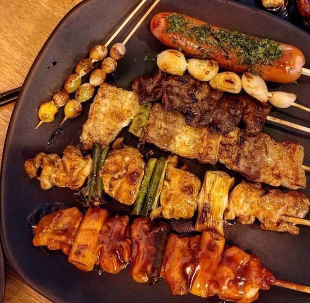 用手机搜索了一下,附近有个叫做胖胖串店的烧烤店,离商厦也不远,大家也没多想,就决定到这家店吃烧烤了。到店里,点了韭菜,牛筋、金针菇、田螺、凉菜拼盘、豆腐皮等,这些食材店主烤得挺香的,味道还不错。尤其是食物独特的碳香味,总是特别容易让人吃了一串又一串。