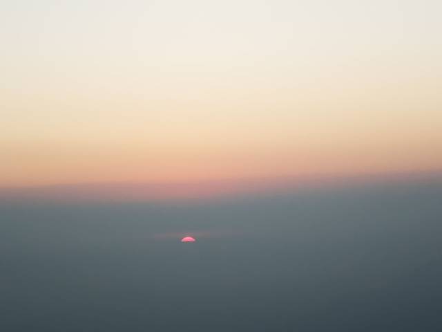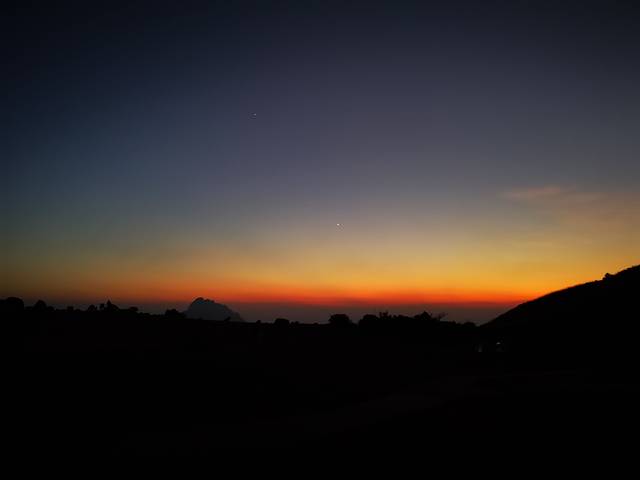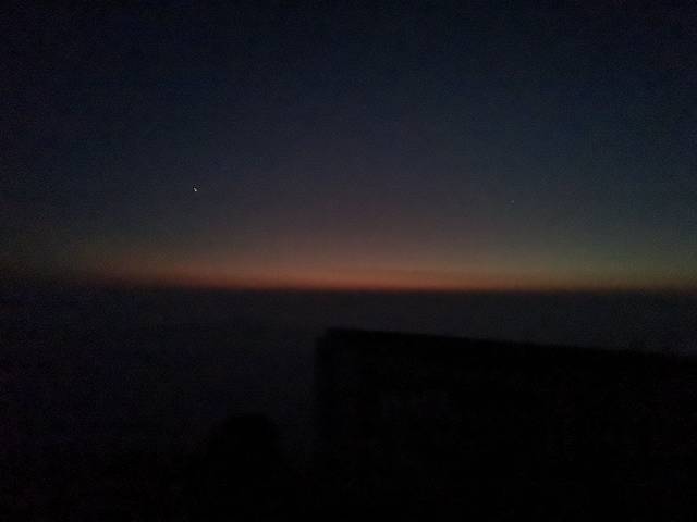 一开始天边只有这么一条线,然后等着太阳慢慢升起,星空和朝阳同时存在于同一片天,