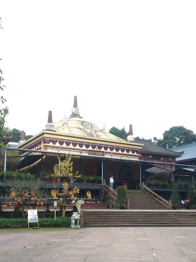 第二天从7:00洗象池出发,9:30到达雷洞坪停车场附近,严觉寺。继续出发,从太子坪出发12:00到达金顶。耗时5小时,