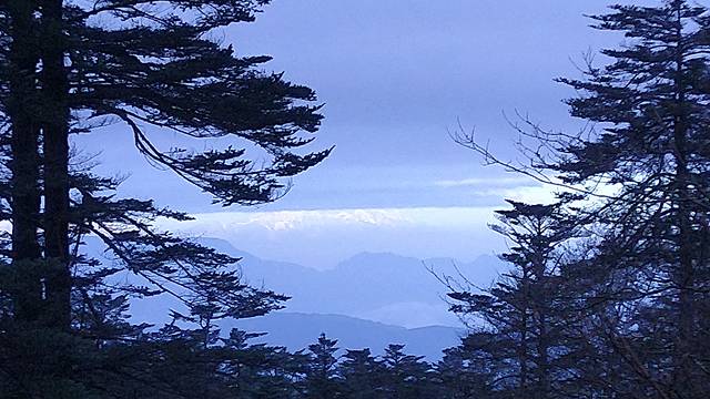 快到雷洞坪的大平台上,已经能远远看到雪山