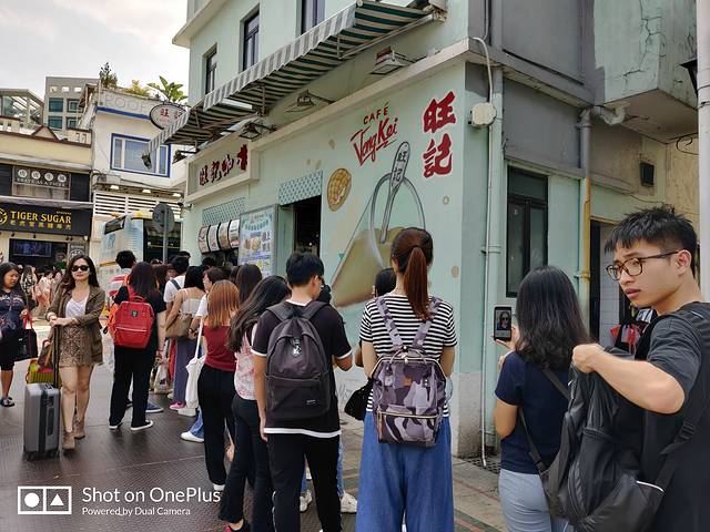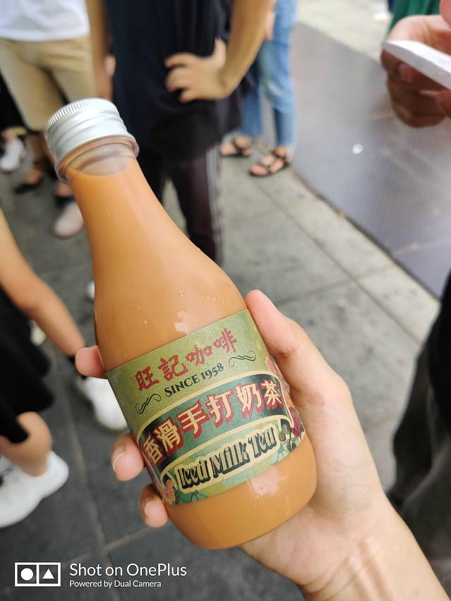 接着排队吃一下咖啡不出名的旺记咖啡的奶茶和猪扒包,奶茶很浓茶味,不会很甜,瓶子装着方便,但很容易漏出来。