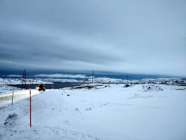 摩尔曼斯克到捷里别尔卡的路上,有点分不清天和地。