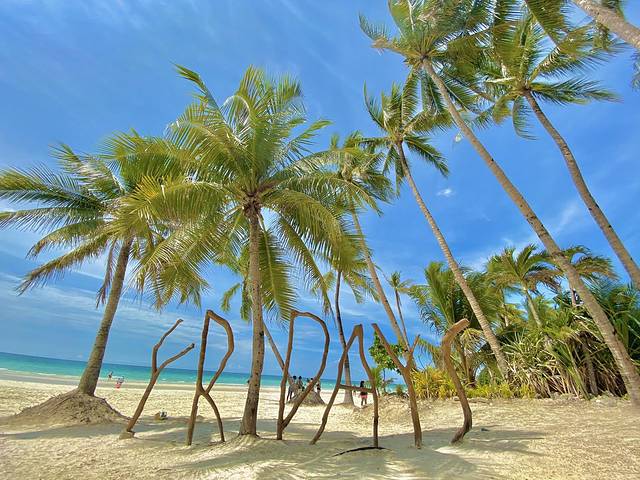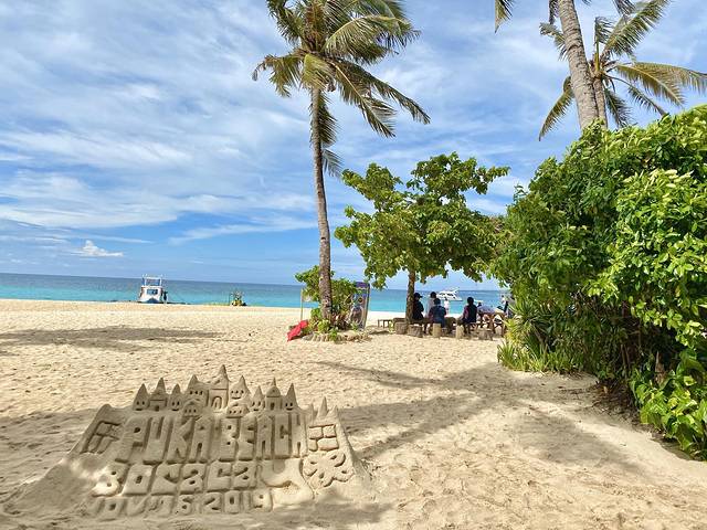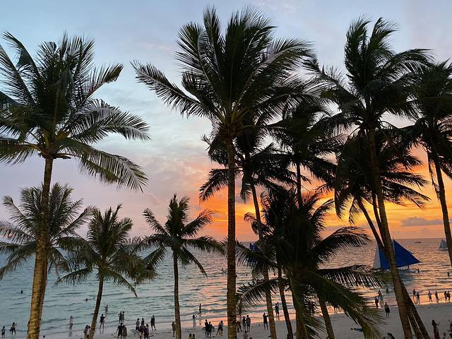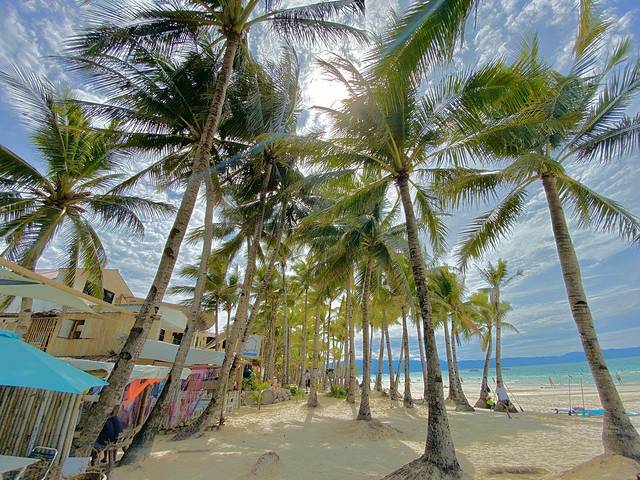 这是天气晴朗时候的白沙滩和星期五沙滩。 白沙滩是长滩岛得以闻名世界的最大原因。被评为世界十大海滩之一,被誉为“亚洲最美沙滩”。白沙滩平缓舒缓,沙质细腻洁白,海水清澈透明。这里的落日十分迷人,海天一线,晚霞笼罩一切。