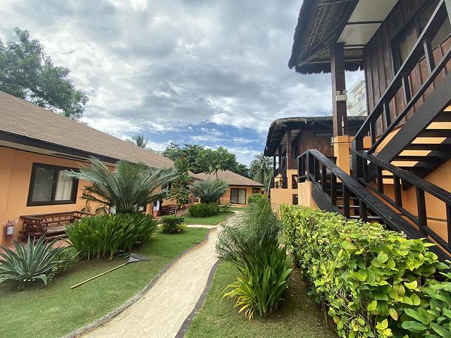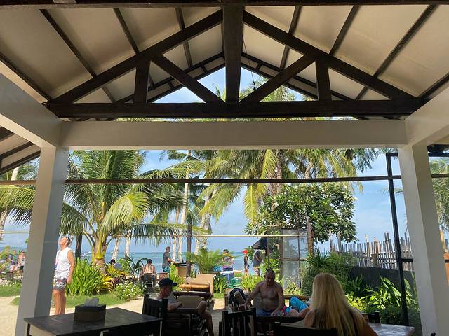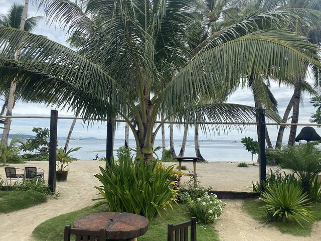 登上岛后坐上当地的接送车,送我们到酒店。 酒店就在海边,感觉很好,酒店住的只有我们是中国人,也挺好的。🧐这是酒店外景