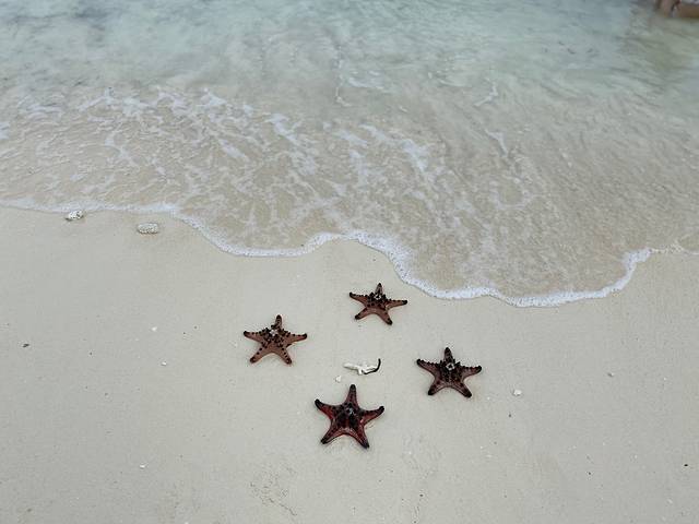 下午来到水牛岛天气慢慢变好 我们在海星沙滩捡了很多海星 浮了潜并且还认识了独自一人来玩的北京小姐姐