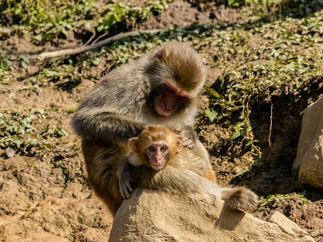 再往里走才知道,这里就是猴园了,住着上百只的猕猴。此刻他们正在晒着阳光,有的还互相嬉戏打闹。随后猴园主人告诉我,他们是群体性动物,如果发现有挑衅行为,他们就会群起而攻之。 比如 说我一直盯着一只猴子看,她觉得我在挑衅它,就会发出独特的呼喊声,不一会儿所有的猴子都来到这里,对着我大喊大叫。