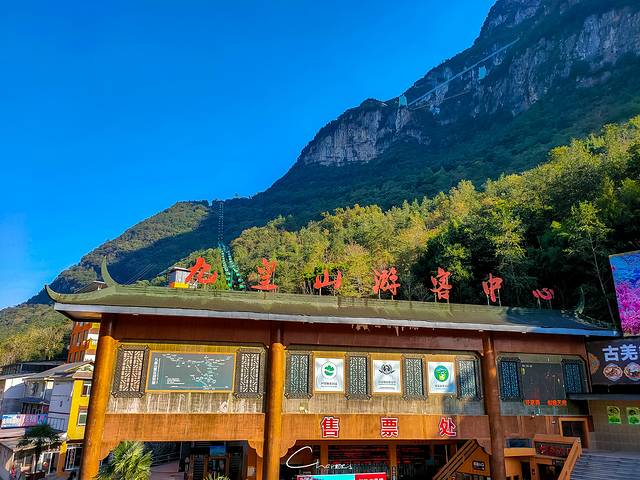 ①九皇山游客中心—索道1:至西羌广场(附近是西羌酒店、萨朗晚会场地、高山温泉)—高山滑道
