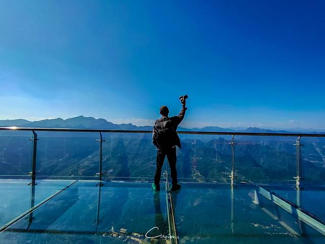 从古道的斜刺里往下走就是这里最有有趣的一个体验项目之一——高空玻璃栈道。