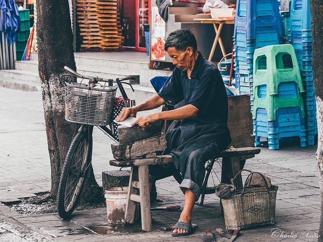 比如 在 成都 的镋钯街,这一位聚精会神,磨刀霍霍的大叔。我会很认真的在街头去感受这个过程,或许这就是一个很平凡的动作,但是就因为有这样的生活细节,才让这座城市有了生机与活力。