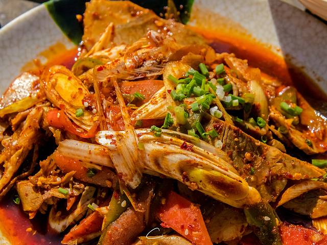这一次来炒作大师,品尝了特色的独家 八宝 辣子鸡,这是必点的招牌菜之一,还有椒麻黄金螃蟹、好运来爆炒面、麻辣烫拌牛肉,每一道菜的食材都很新鲜,尤其是像螃蟹这种,口感非常的棒。尤其在结合川 菜的制作工艺之后,完全是出乎我的意料,给我带来了莫大的惊喜。