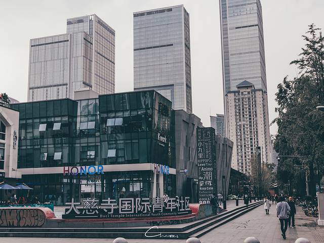 这里距离太古里很近,也可以说是太古里其中的一个小角落。位于街边不起眼之处,背后就是各种高楼大厦。在我途径这里的时候,刚好有一些滑板爱好者在这里练习。
