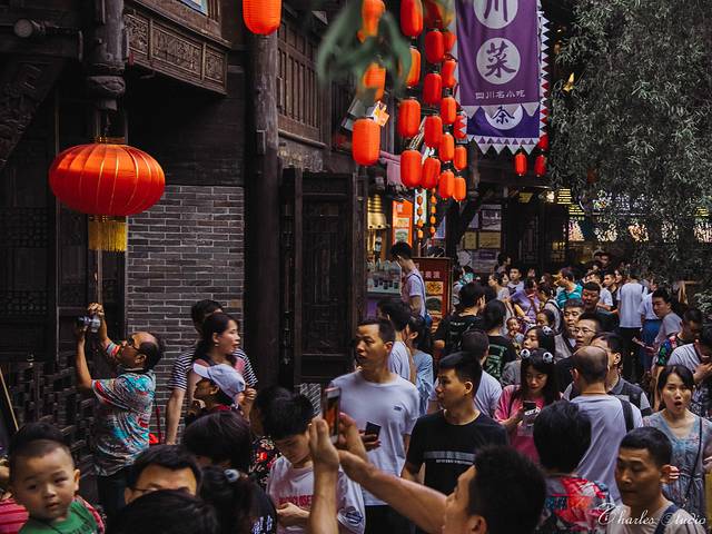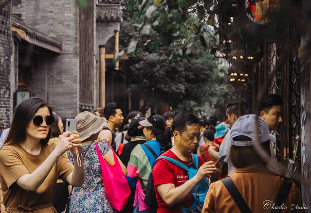 充分感受了人来人往,拍照必须要找一个角度才能够不被遮挡住镜头。这也从另外一个角度可以看出,这个地方受热爱的 成都 ,几乎每一个来 成都 的人都不会放过来这里打卡的机会。
