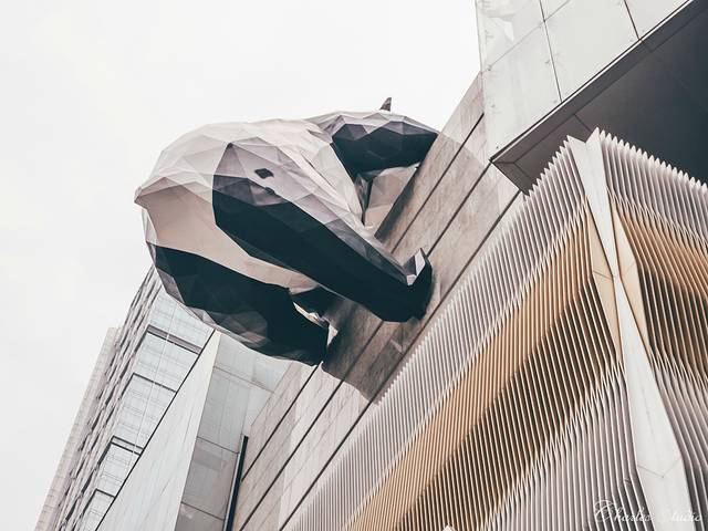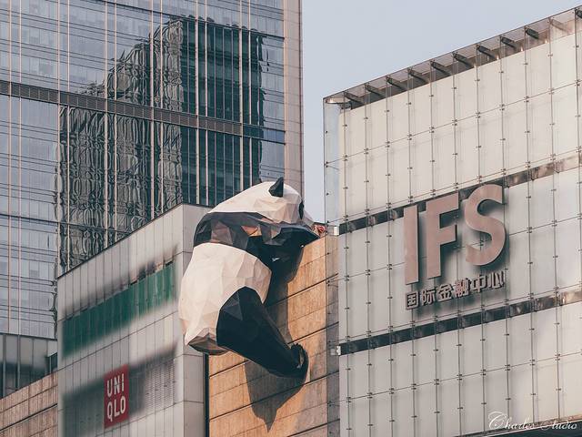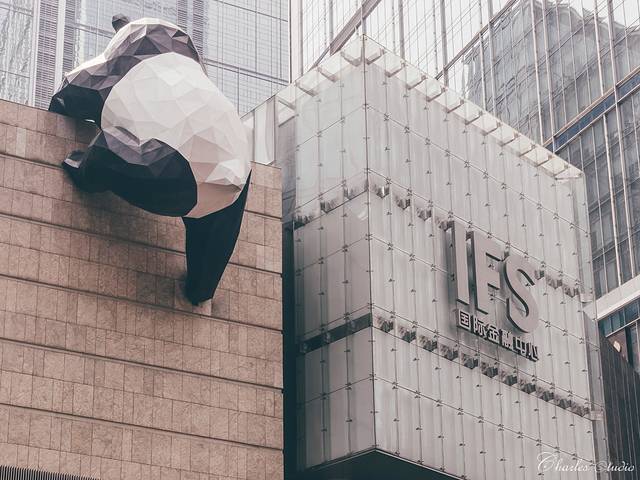 同样的在春熙路,我会感受到另外一番景象。每个人都急匆匆的行走在写字楼之间,即使是聊天也是快步行走,转眼就消失在了眼前。而最为悠闲的就要属于这只趴在墙上的宝贝大熊猫了。无论你如何来去匆匆,我自岿然不动!