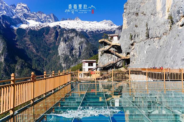 回音壁之上有巴拉格宗景区另一主打——高空玻璃栈道,这也是中国海拔最高的玻璃栈道,可以观赏到脚下的香格里拉大峡谷。