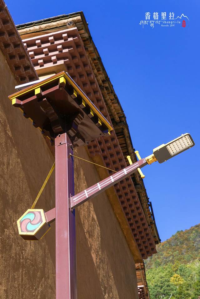 村子里修建的路灯是藏区乐器曼陀铃,民族风情十足。