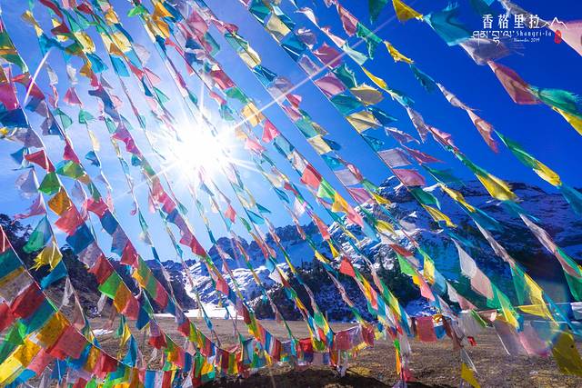 以雪山为背景的经幡特别美,希望遇见它们的人都能得到祝福!