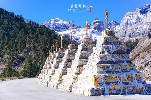 巴拉村-香格里拉佛塔:22公里,车程40分钟,单程40元,往返75元(可游览千年菩提树、德金卡、香格里拉大峡谷、神水、班丹拉姆观景台、巴拉卓玛拉康、巴拉村、回音壁高空栈道、花海塘、香巴拉佛塔)