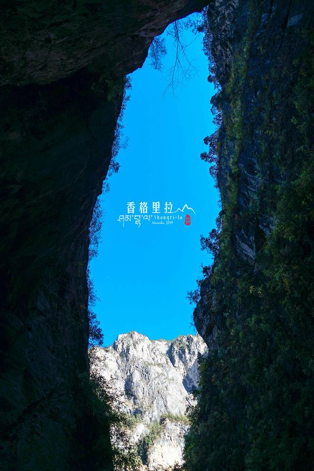 通天峡是香格里拉大峡谷的一大支峡,德金卡是它的藏语。从谷底到峡顶大概长4000米左右。峡谷为U型,两侧山体呈现不同地貌,从谷底仰望是一线青天。