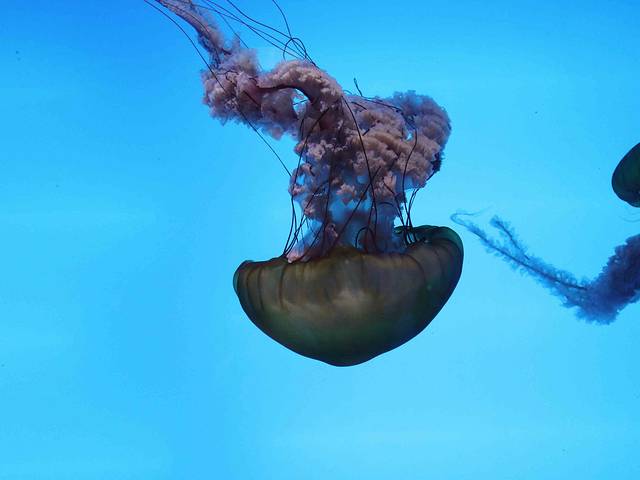 ️海底隧道深邃神秘,鲨鱼馆惊险刺激,给我留下了深刻印象,我特别喜欢科幻感十足的水母馆,在灯光的映射下里面的水母形态各异。非常漂亮。