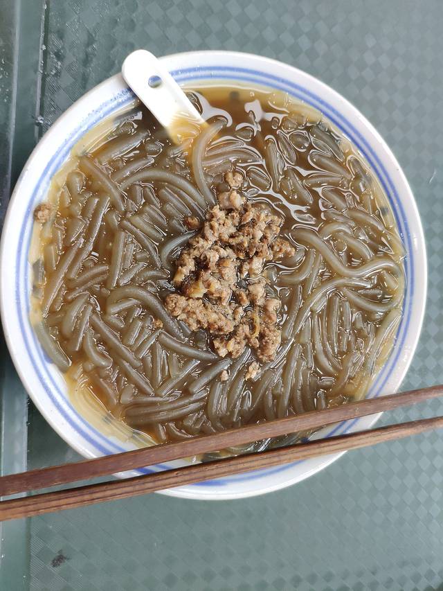 欣赏完银杏,带走了一片刚好落在眼前的落叶,我便回民宿收拾行李了。中午还是先去附近饱餐一顿,再启程萧山机场。午餐的店选了很久,终究还是去回新丰小吃,去尝尝那碗普通的,但满是杭州味道的牛肉薯粉。(主要是早餐吃太饱吃不下薯粉,但来都来了,还是得试试这三大招牌之一吧😂)