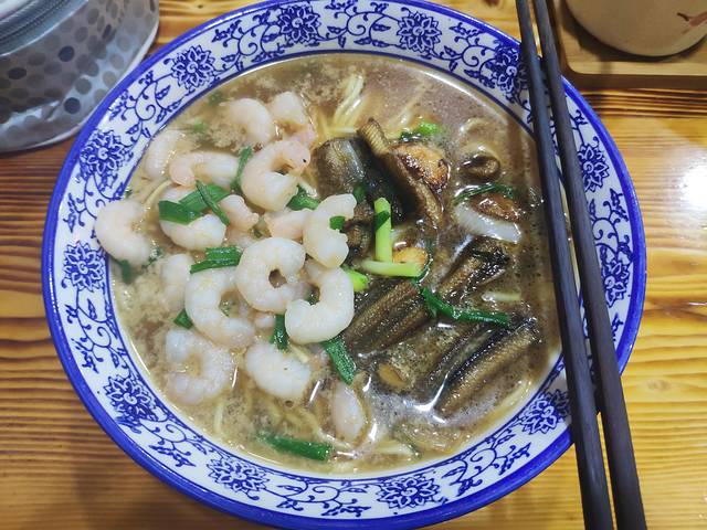 去到后还需排一下队,的确很多本地人都会来这吃面,我就安心排队了。这里的规矩是排队等候窗口的阿姨给你现场做面,一手给面一手交钱。做面的火候很猛,锅气很够,我点的是虾爆鳝,原本还想尝尝众多人安利的茄汁拌川,但因为只有一个人吃不完,只能留着下次再来杭州的念头了。