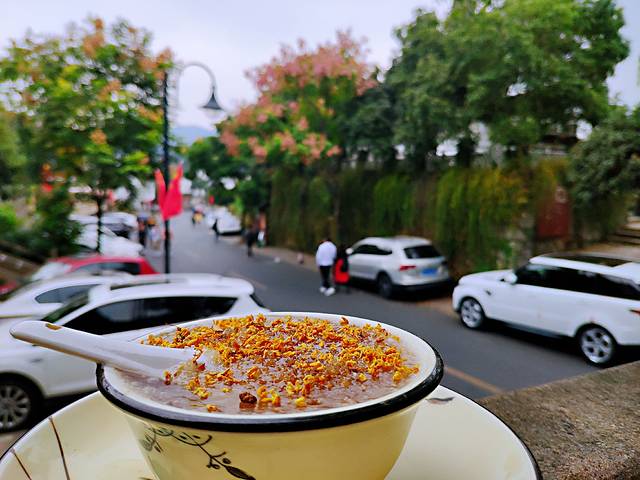 下山后,便开始坐几站路的公交去整条路都是桂花味的满觉陇噜!不过不知道是不是因为我来得时候有点早,路上的桂花还不是开得很旺盛,但或许正是这种稀缺,每找到一处桂花都能让我开心许久🌸来到满觉陇 少不了尝一口桂花栗子羹(¥20),第一口感觉还蛮好吃,不过吃到最后会有点甘。最令我惊喜的是晒干的桂花是脆脆的,入口有种独特的感觉。