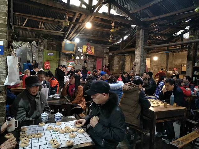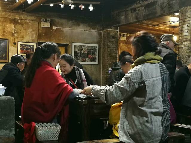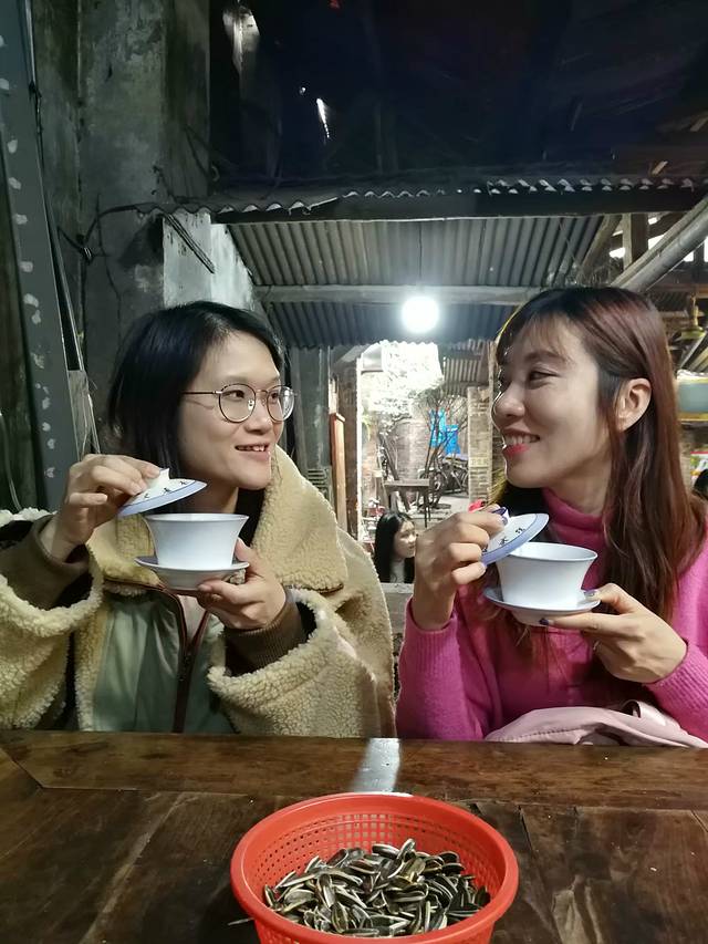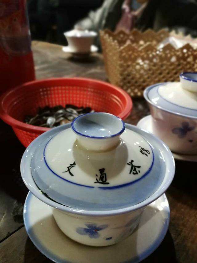 有多个茶的品种,碧螺春、菊花、普洱等等,都是8元一位,瓜子花生10元一份,分量很多,水自己随便冲。。。扑克麻将象棋通通都有,就在四川美院隔壁,走几步路就看到了