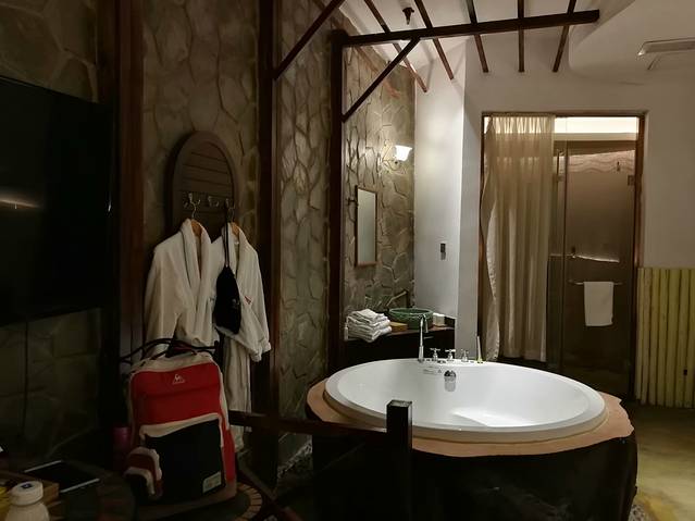 民宿江景不错,还有半露天的浴缸,可惜房间不大,江景房淡季300-500/晚